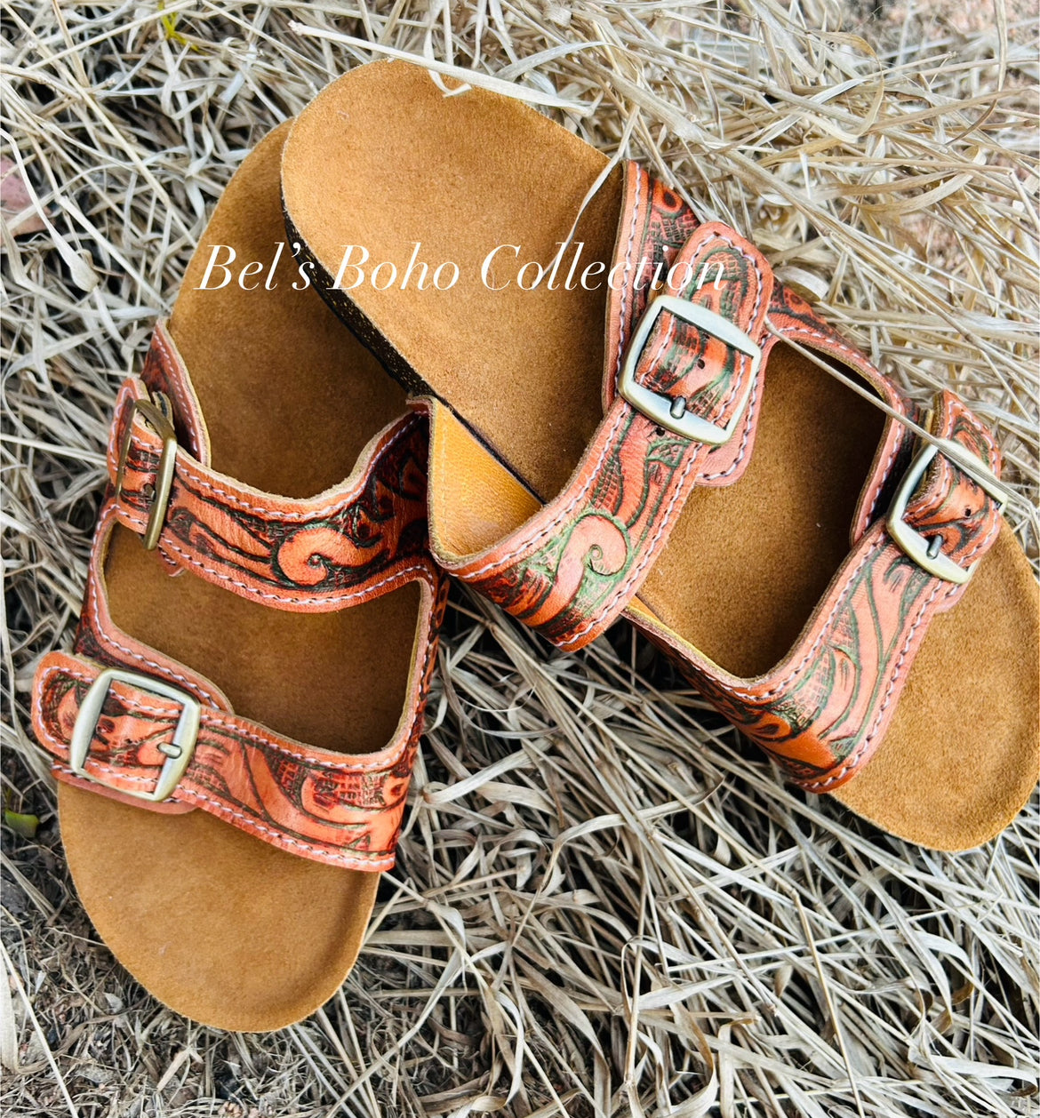 You'll love these beautiful handmade leather Birkenstock style sandals. They also feature dual buckle straps. The robust cork platform provides day-long comfort, along with the sure grip sole.