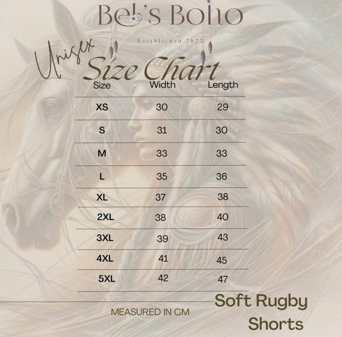 The original Bel’s Boho Collection Footy Shorts are built for work or play. Made from tough 100% cotton drill fabric. Features a drawstring & zippered pockets on each side. Featuring Bel’s Boho Collection Logo on the side.