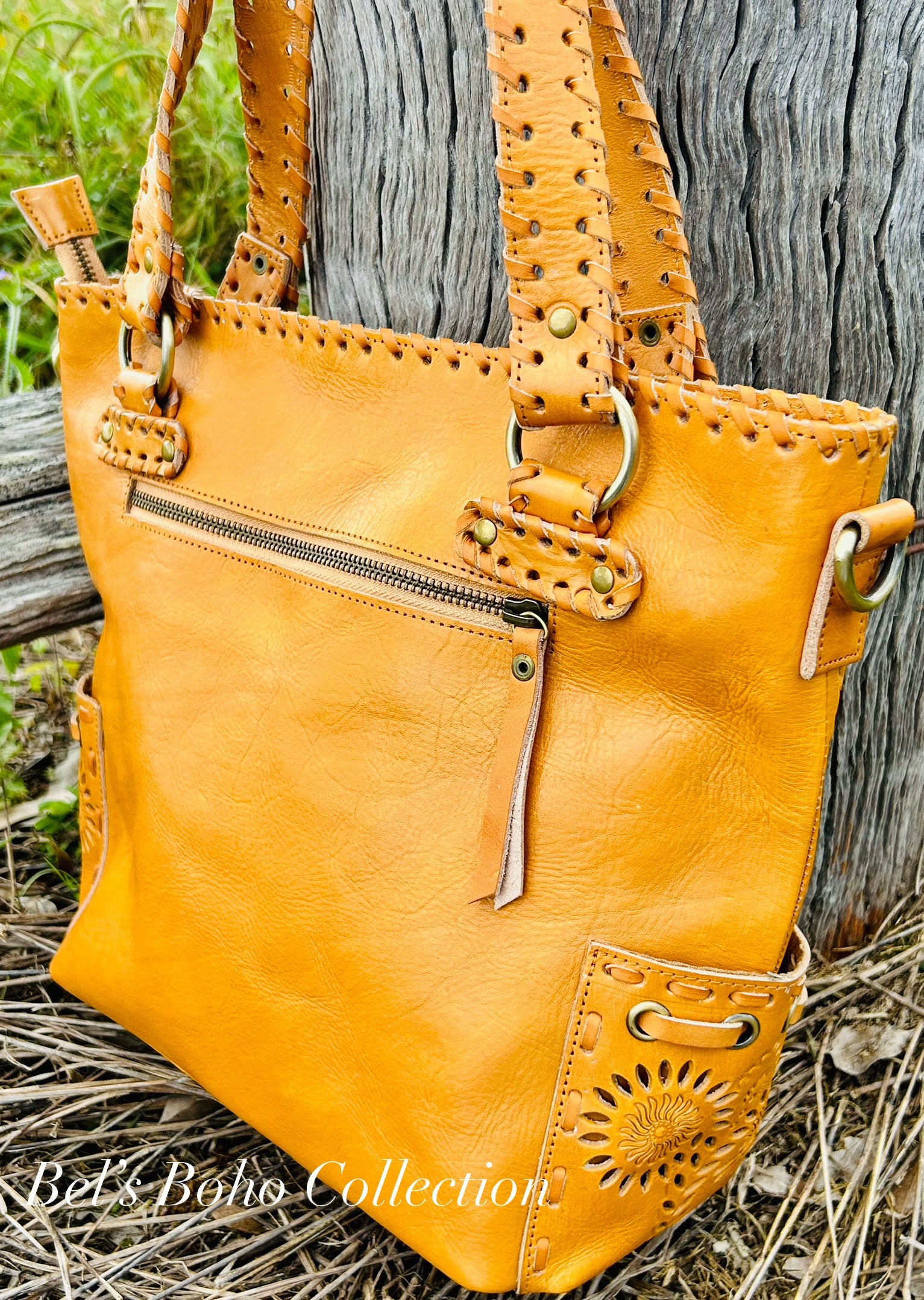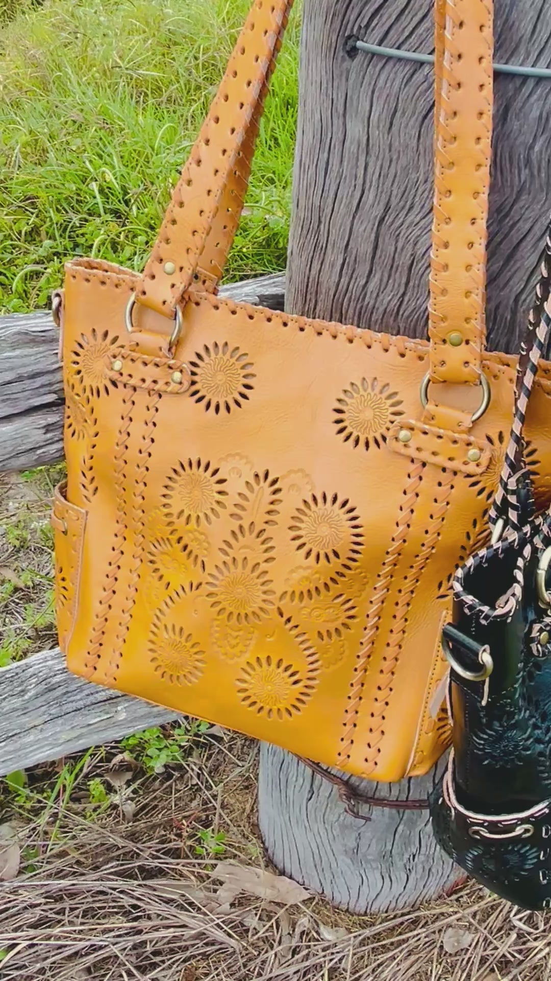 The Harlow Bag is an exquisite leather handbag which is entirely handmade & hand-carved from high quality genuine leather showcasing meticulous craftsmanship. Its unique design includes beautifully hand-weaved shoulder straps & accent pieces, blending elegance with artistry. Each detail reflects traditional techniques, resulting in a one-of-a-kind accessory that combines timeless style, durability & a touch of rustic sophistication.